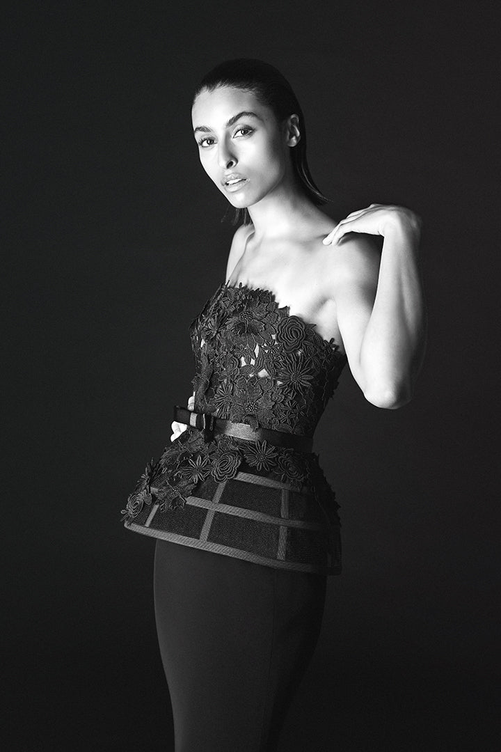 The gown’s structured design and detailed embellishments make it a perfect representation of the Architectural Details trend.