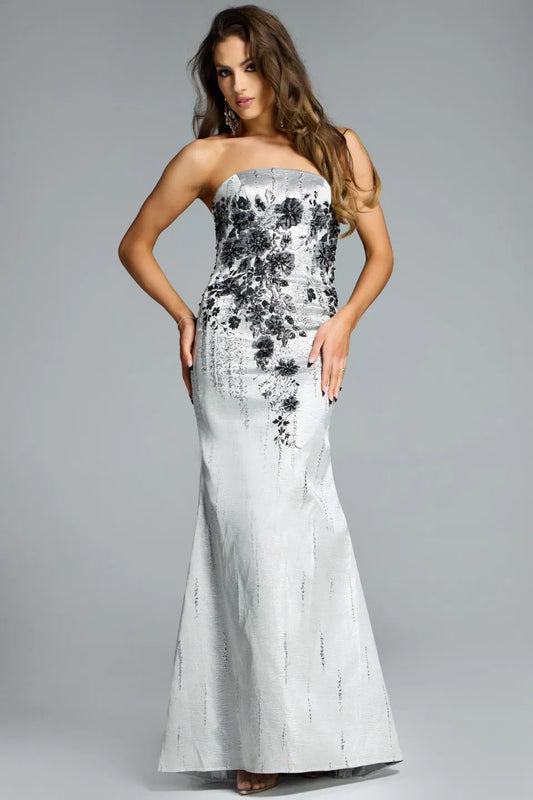 Jovani - 44114 - Strapless Evening Gown with Textured Floral Detailing