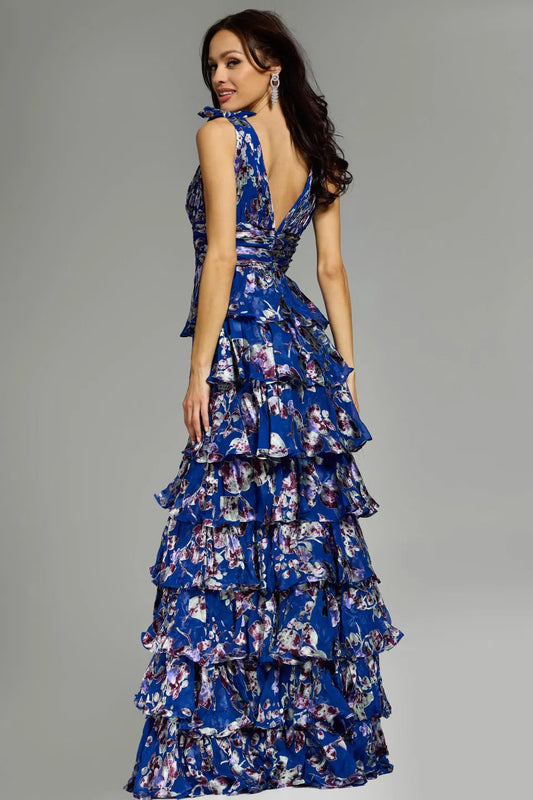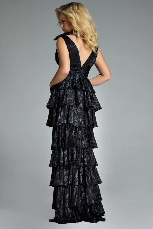 Jovani - 42380 - Layered A-Line Gown with Deep V-Neckline