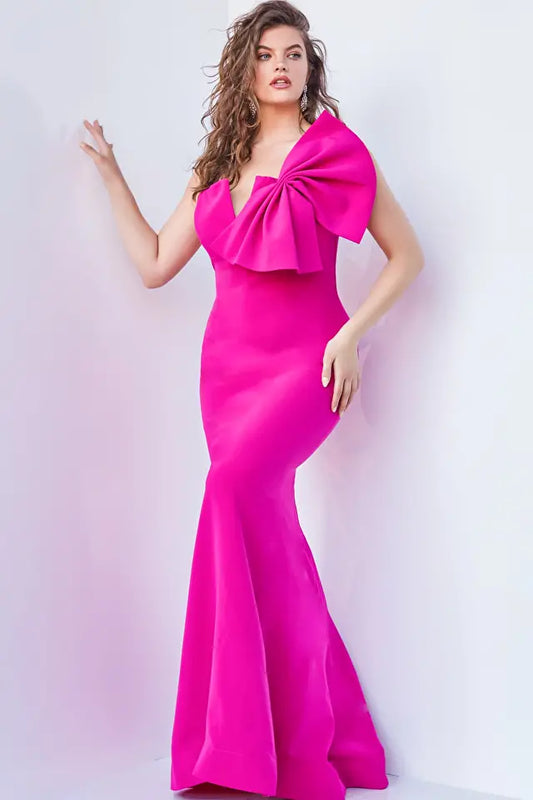Jovani - 07306 - One Shoulder Mermaid Crepe Gown with Bow Strap