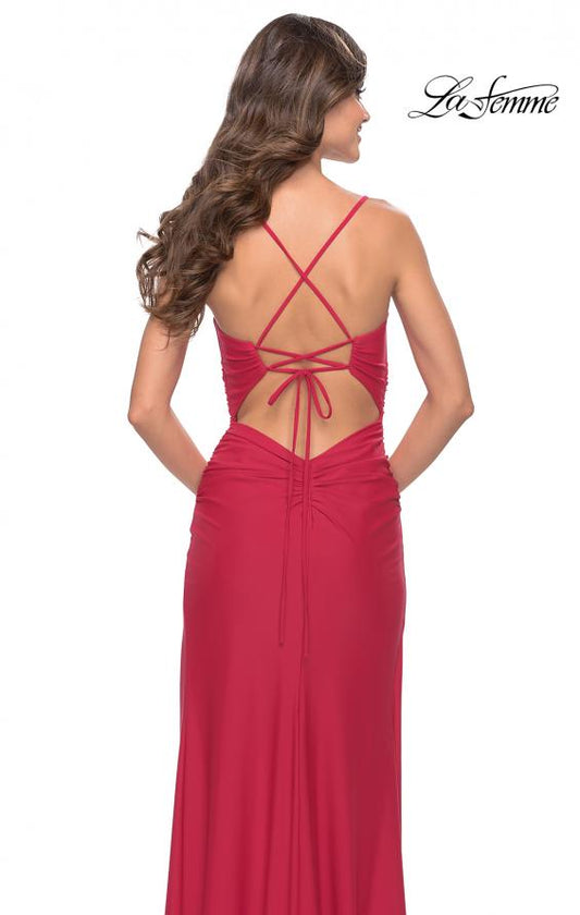 La Femme - 30726 - High Slit Prom Dress with Lace-Up Back