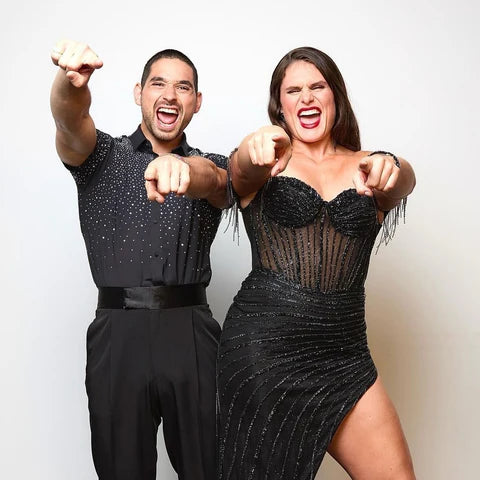 The rugby player showcased Ladivine's designs on Season 33 of Dancing with the Stars, wearing styles CD848 and J875.