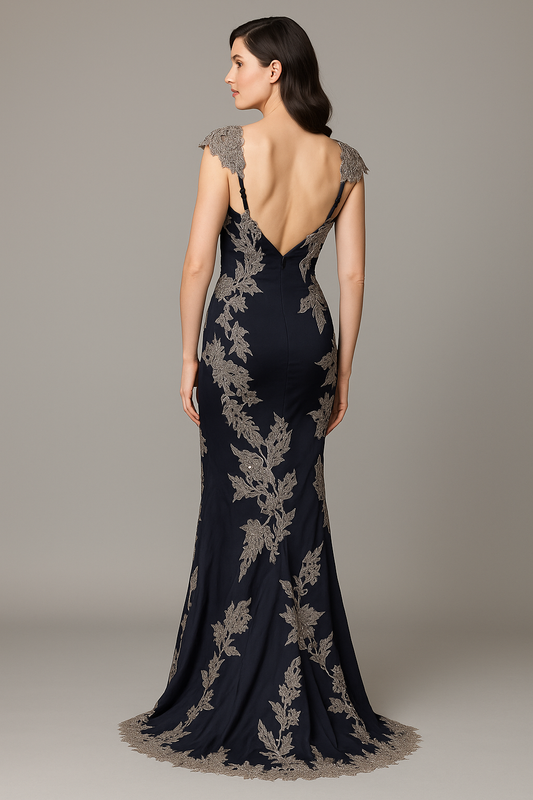 Mandalay - C831790DEBL - Sleeveless Gown with Embroidered Detailing