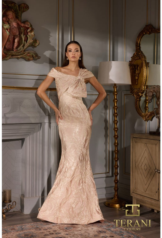 Terani Couture - 252M5520 - Off-Shoulder Bodycon Gown with Bow Detail