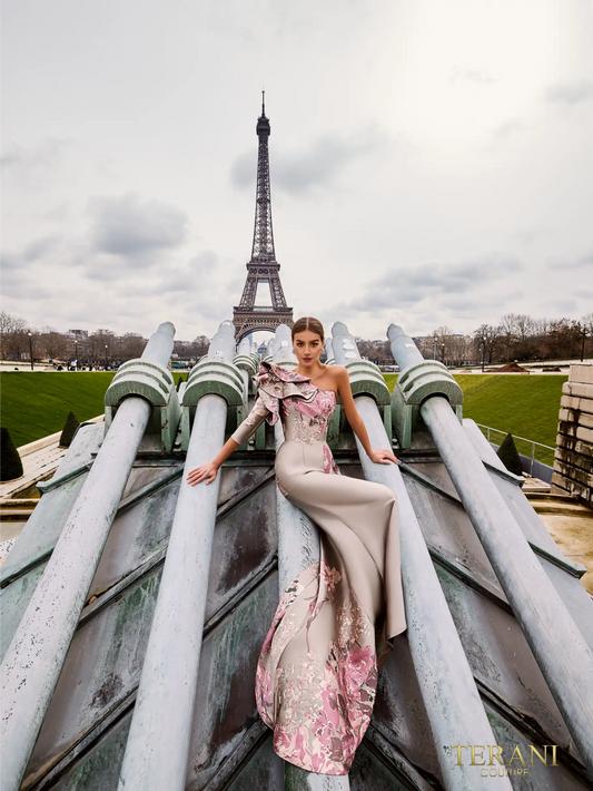 Terani Couture - 242M3342 - Asymmetric Off-Shoulder Gown